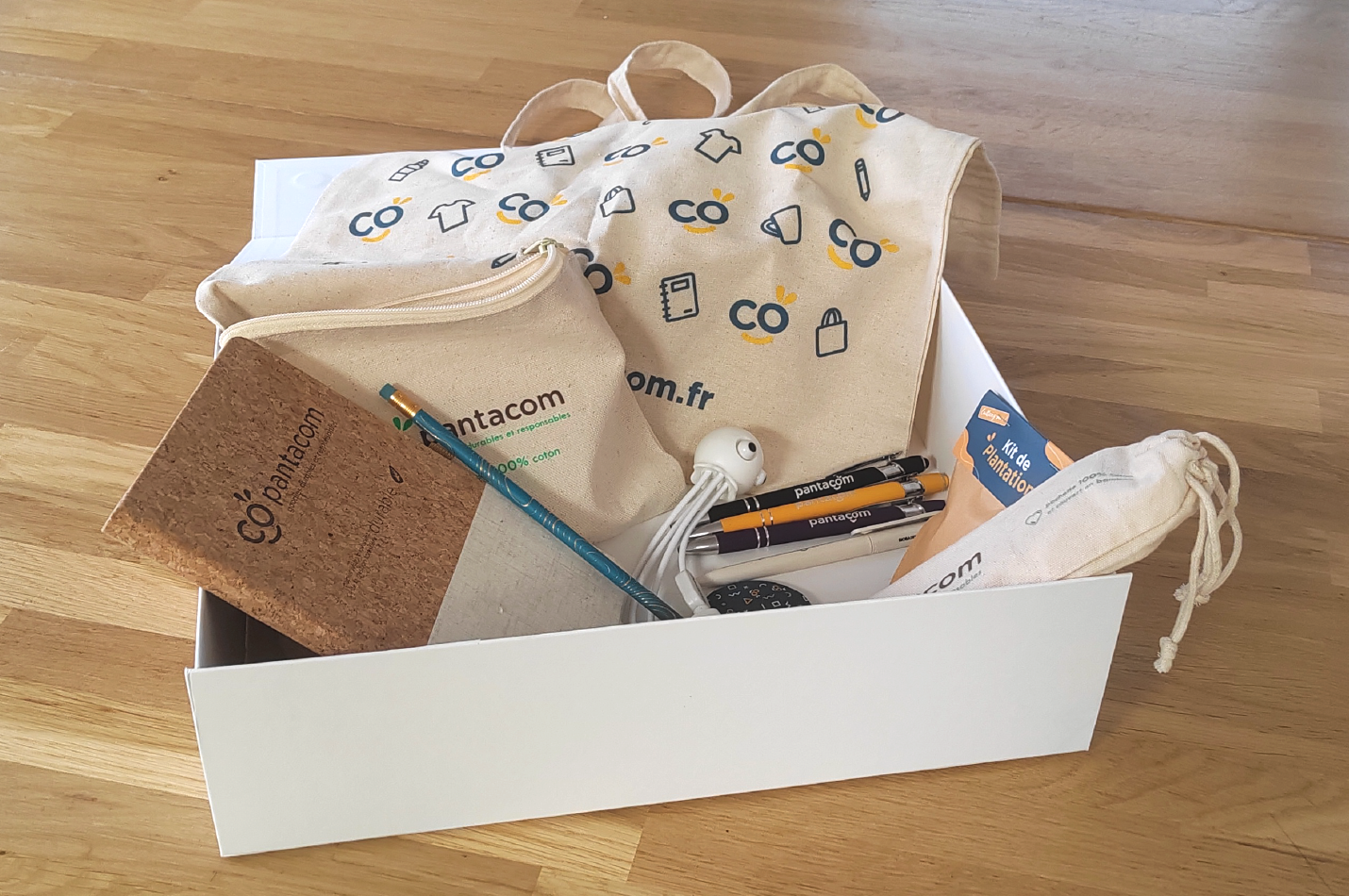 La société pantacom est située à Nantes (44300), en Loire Atlantique. L’équipe est composée d'experts dans leur domaine. Nous sommes spécialisés dans l’objet de communication, les goodies responsables. Notre objectif est de proposer aux entreprises un catalogue avec 80% de nos produits issus d'une démarche RSE. Un objet média peut être éthique par sa provenance, son utilisation, sa fonction et avec une fabrication Française ou Européenne. Notre rôle est de conseiller les professionnels en proposant des objets publicitaires durables et éco-conçus avec des matériaux recyclés, biologiques et responsables.