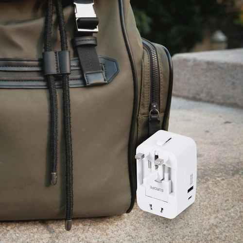 Adaptateur universel de voyage avec 2 sorties USB 2,1A - compatible dans plus de 150 pays - blanc