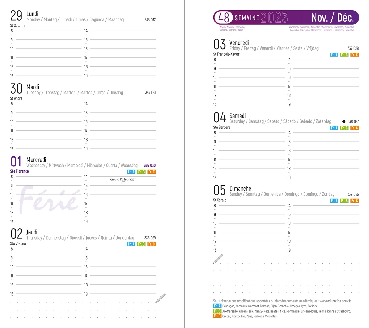 GRILLE 13 mois en quadrichromie - 128 pages + 16 pages d'Atlas - 7 langues