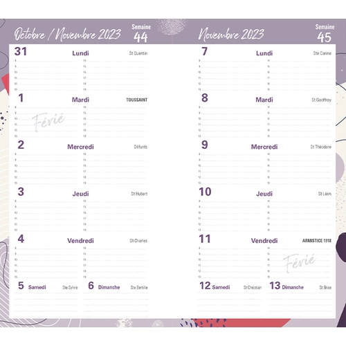 Format : Format 94 x 168 mm, 64 pages, 1 semaine sur 2 pages.