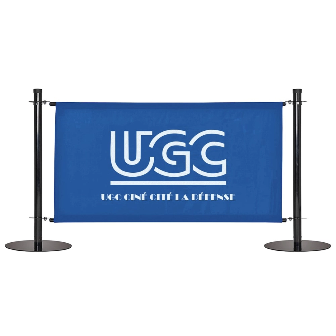 Découvrez notre barrière de séparation personnalisable, conçue pour organiser et délimiter avec élégance les espaces de terrasses de café, les files d'attente, ou lors d'événements divers. Cette solution est composée d'une bannière imprimée en haute qualité, fixée entre deux poteaux lestés en métal, offrant à la fois robustesse et visibilité à votre marque.