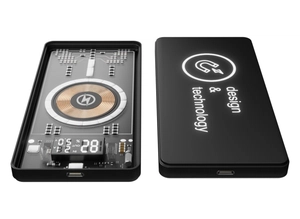 Design et Fonctionnalité Révélés Fabriquée avec une finition en rubber de qualité, cette batterie de secours intègre un logo lumineux qui ne manquera pas de mettre en valeur votre marque. Son circuit interne, visible à travers un design épuré, témoigne de l'innovation technologique de ce powerbank. Avec une capacité de 5 000 mAh, un affichage digital et une sortie/entrée USB-C, restez connecté où que vous soyez.