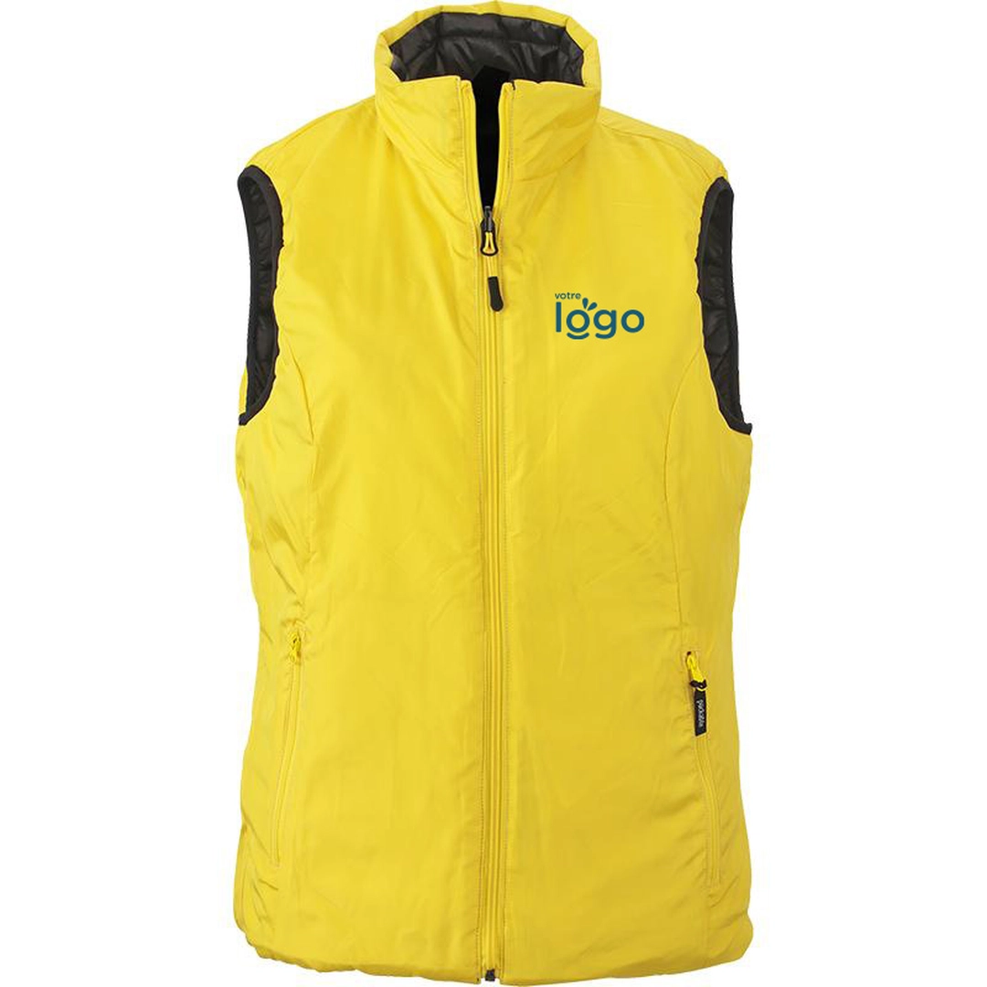 Bodywarmer matelassé Femme - Fermeture zippée contrastée - 2 poches latérales zippées - 2 poches intérieures zippées - Ouverture jeannette pour faciliter le marquage