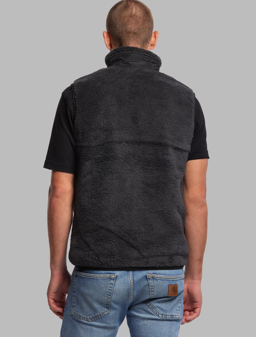 Fabriqué en polaire Sherpa 100 % polyester, dont 42 % issu de matière recyclée, ce gilet assure une excellente isolation thermique grâce à son grammage élevé de 360 g/m². Son col montant renforce la protection contre le froid tout en apportant une touche moderne.