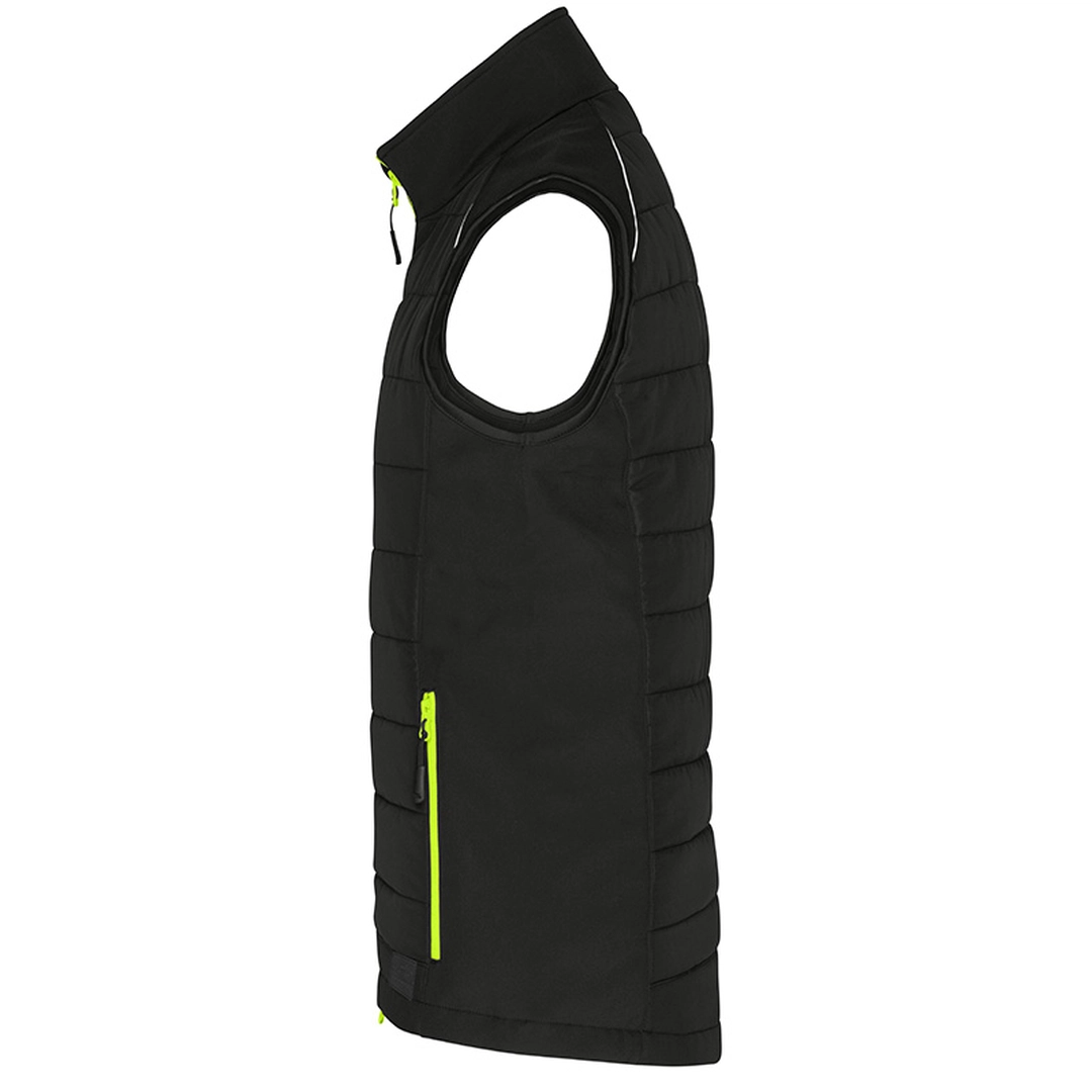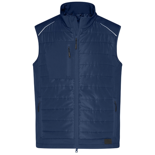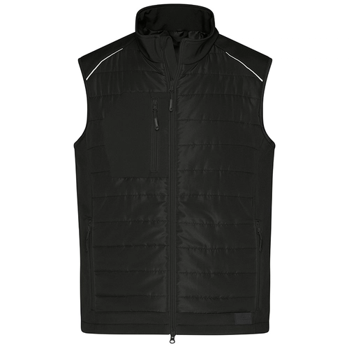 Ce bodywarmer "hybride" de la marque James & Nicholson impressionne par son tissu softshell à deux couches qui peut être porté aussi bien pour le travail que pour les loisirs.
