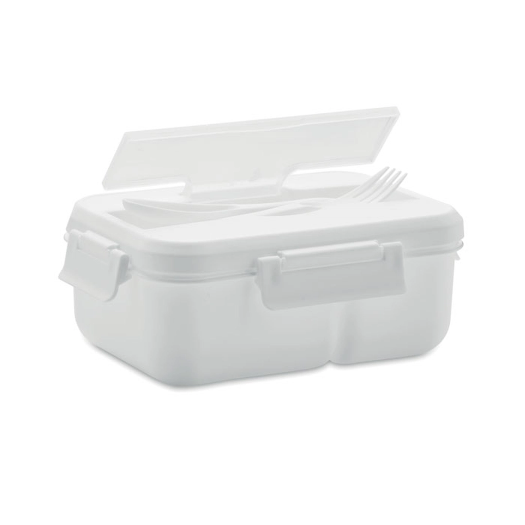 Boîte à lunch à deux niveaux en PP avec un set de couverts assortis. Capacité totale : 1000 ml Apportez un déjeuner sain et fait maison au travail ou lors d'un pique-nique. Grâce aux deux parties séparées, il est facile et pratique d'apporter des aliments ou des ingrédients distincts pour le déjeuner.