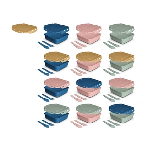 Grâce à sa conception innovante à plots, vous pouvez solidariser plusieurs boîtes entre elles, facilitant ainsi leur transport. Le format carré optimise l'espace de votre sac et permet un rangement efficace. Avec une contenance de 100 cl (1200 ml), elle est spacieuse pour accueillir différents types de repas. Les couverts, une fourchette et une cuillère, sont astucieusement fixés sous le couvercle, assortis aux couleurs de la boîte pour une harmonie parfaite.