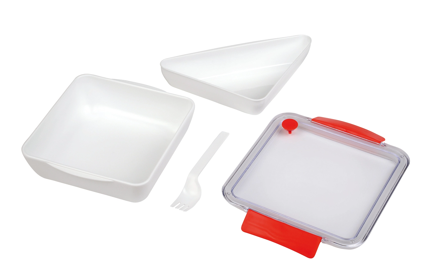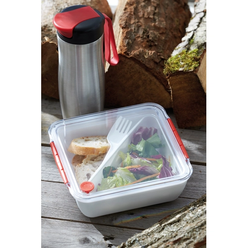 Boite repas DELICIOUS : avec compartiment séparé (env. 400 ml), fourchette en plastique incluse, capacité totale d´environ 1.000 ml, bouchon pour ventilation intégré dans le couvercle, adapté au lave-vaisselle et micro-ondes.