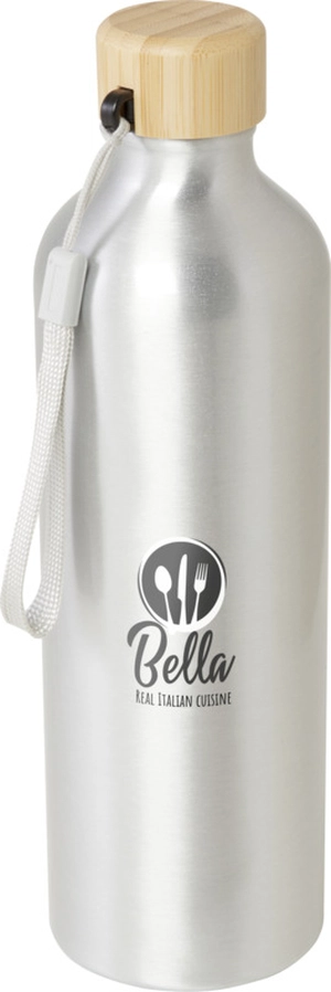 Augmentez votre visibilité avec notre bouteille d'eau en aluminium recyclé certifié RCS de 770 ml, un choix parfait pour ceux qui recherchent à la fois style et durabilité. Cette bouteille, dotée d'un élégant couvercle en bambou provenant de sources durables, associe fonctionnalité et engagement environnemental. Sa capacité généreuse de 770 ml vous assure une hydratation optimale tout au long de la journée, que ce soit lors de vos déplacements, à l'entraînement ou au bureau.