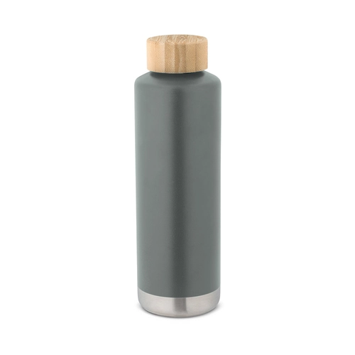 Bouteille double parois sous vide en acier inoxydable et couvercle en bambou avec joint en silicone pour une protection supplémentaire.