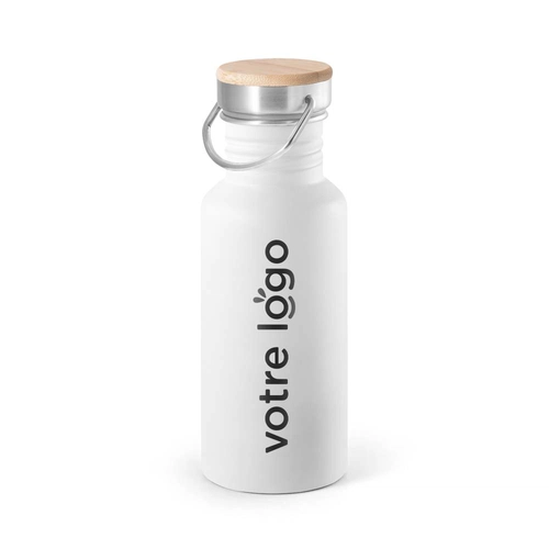 Pour ce qui est du marquage, plusieurs options s’offrent à vous. Vous pouvez opter pour une sérigraphie sur le corps de la bouteille, pour une gravure laser sur le couvercle ou le corps, ou une tampographie, sur le couvercle.