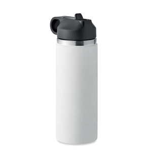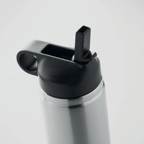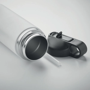 Bouteille à double paroi en acier inoxydable recyclé (90% d'acier inoxydable recyclé et 10% d'acier inoxydable recyclé) avec poignée, couvercle en PP et paille intégrée. Anti fuite. Capacité : 500 ml.