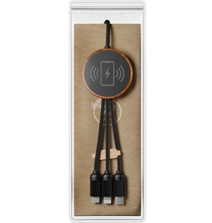 Câble de 1 mètre, avec un entrée USB et USB type C équpé de 4 types de sorties (Type C, Micro USB, iPhone & induction 10W). Le câble est bien sur équipé d'un logo lumineux personnalisable, il peut charger plusieurs produits à la fois. Le câble possède une surface induction 10W.