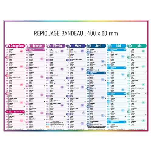 - Grille standard 7 mois par face imprimée en quadrichromie sur papier CMB PEFC 115 g/m²