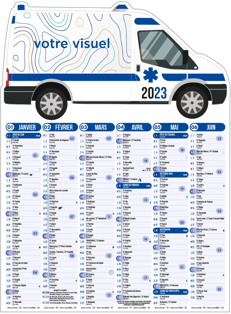 image du produit Calendrier bancaire 2025  AMBULANCE 55 x 40 cm - 6 mois par face image du produit Calendrier bancaire 2025  AMBULANCE 55 x 40 cm - 6 mois par face