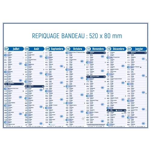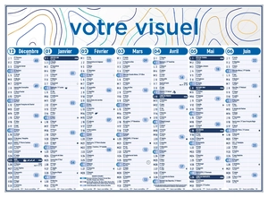 - Grille standard 7 mois par face imprimée en deux couleurs sur papier CMB PEFC 115 g/m²