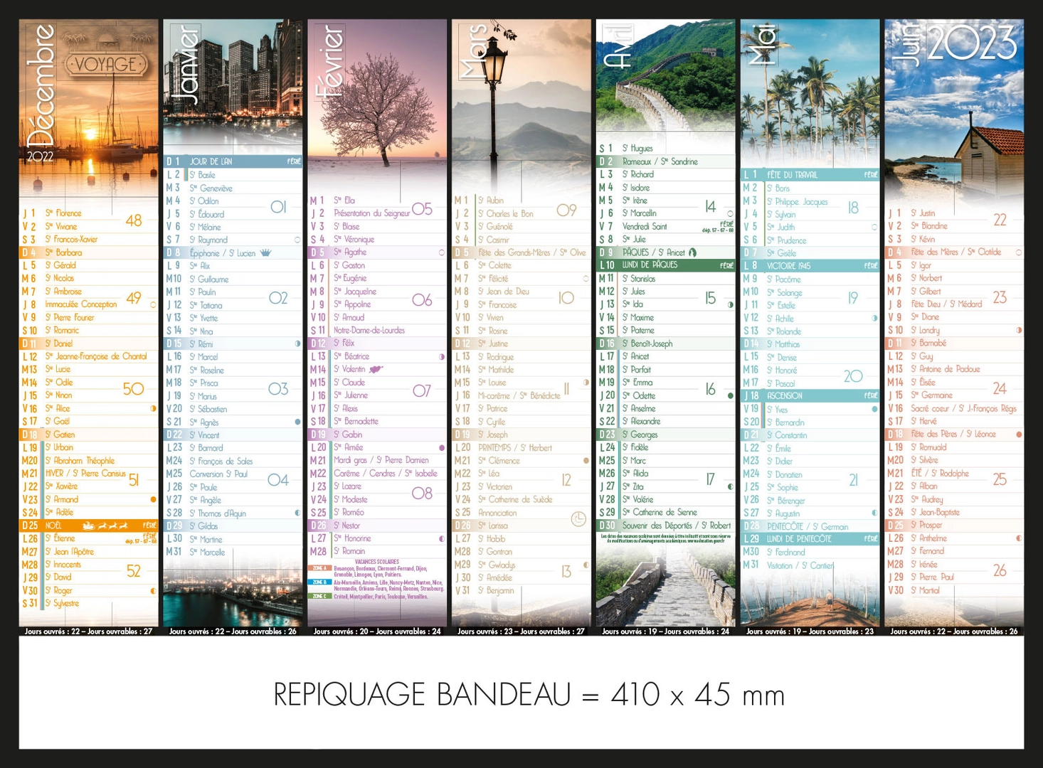 Calendrier bancaire 2025 VOYAGE format 43 x 33 cm - 7 mois par face