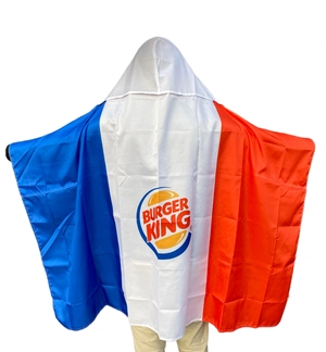 Découvrez notre cap de supporter avec capuche et manches, un drapeau personnalisable idéal pour vos événements sportifs et rassemblements. Avec une taille de voile de 90cm x 150cm, ce produit est fabriqué en polyester 60D de haute qualité, traité anti-feu pour garantir votre sécurité. Le façonnage innovant avec manchons pour les bras et une capuche assure un confort optimal et une grande liberté de mouvement.