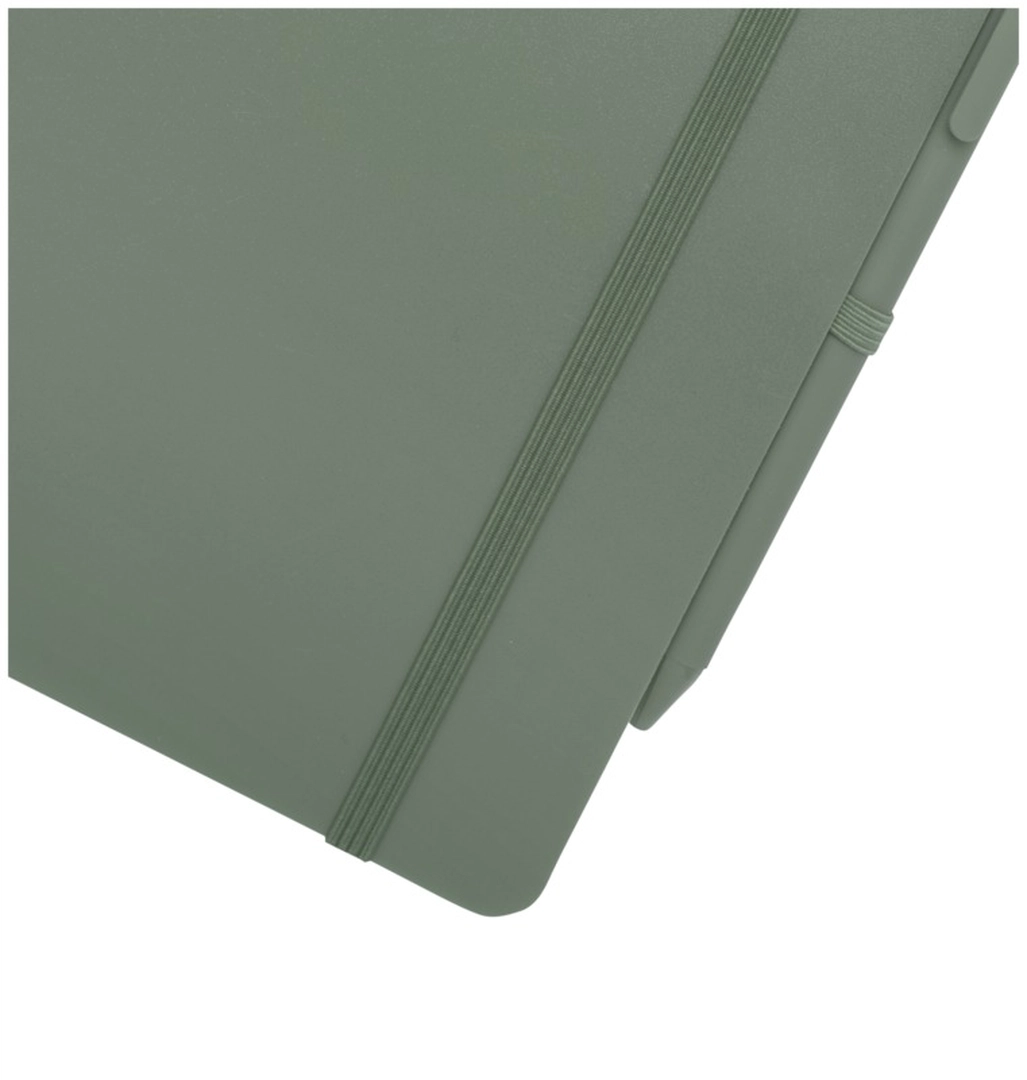 Le carnet rigide comprend 80 feuilles lignées de papier crème certifié FSC, 70 g/m². Il dispose d’une fermeture élastique, de coins arrondis pour une meilleure durabilité, et d’une boucle intégrée pour y insérer le stylo.
