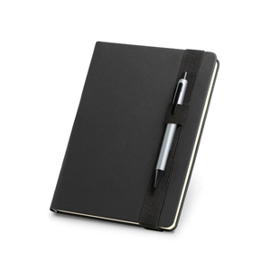 Ce carnet publicitaire est doté d'une couverture rigide et robuste, fabriquée en simili cuir, ce qui lui donne une apparence haut de gamme. Elle vous permettra de glisser facilement le carnet dans vos différents sacs sans l’abimer. Vous trouverez sur ce produit publicitaire, deux élastiques : l’un, faisant office de porte stylo très pratique, l’autre servant à fermer le carnet.  Ce carnet personnalisable est l'idéal pour prendre en notes le contenu de vos réunions, de vos cours, de vos conférences. De plus, ses 280 pages lignées en papier ivoire lui apportent de l’élégance et un touché agréable. Les pages vous permettront d'écrire, de dessiner ou de schématiser sur un papier résistant, de manière claire et concise, ce qui vous aidera à rester lisible.