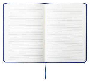 Carnet de note recouvert de polyester RPET avec 80 feuilles lignées, signet et sangle en caoutchouc. Format A5.