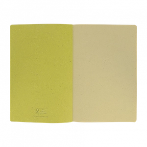 Matière principale:  Feuilles : 50% herbe recyclée + 50% pâte à papier FS, 90/120 gr./m². Couverture : 300gr.