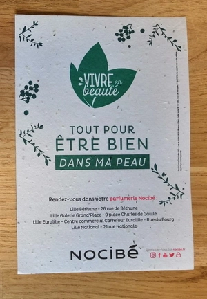 Carte en papier de graines au format A5.