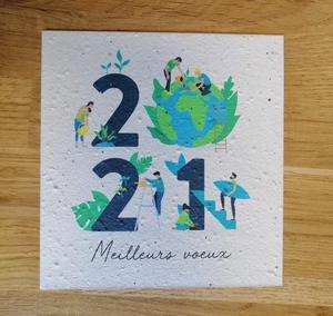 Carte en papier de graines au format carrée d'environ 15 x 15 cm.