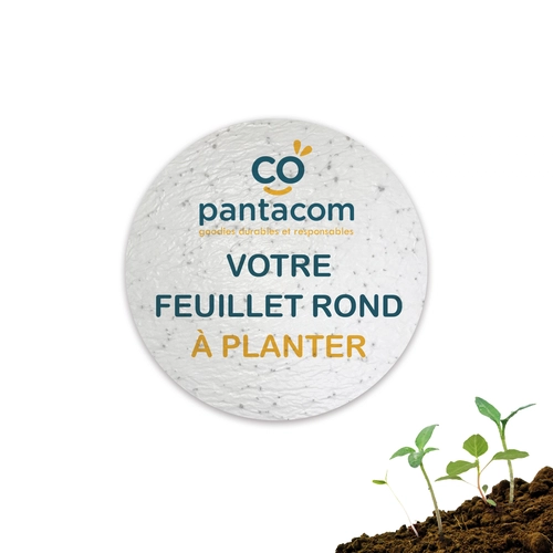 Carte en papier de graines au format rond de diamètre 10 cm.
