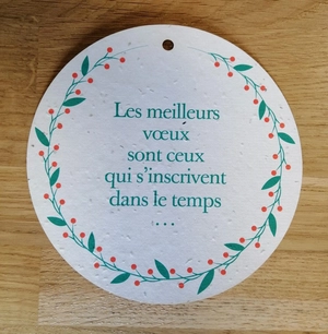 Carte en papier de graines au format rond de diamètre 10 cm.