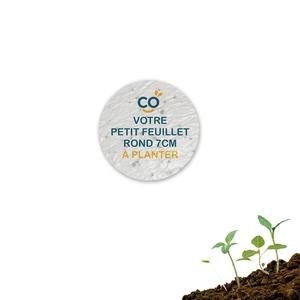 Carte en papier de graines au format rond de diamètre 7 cm.