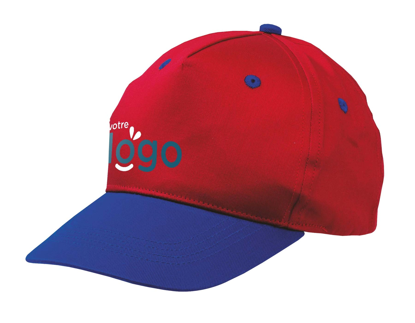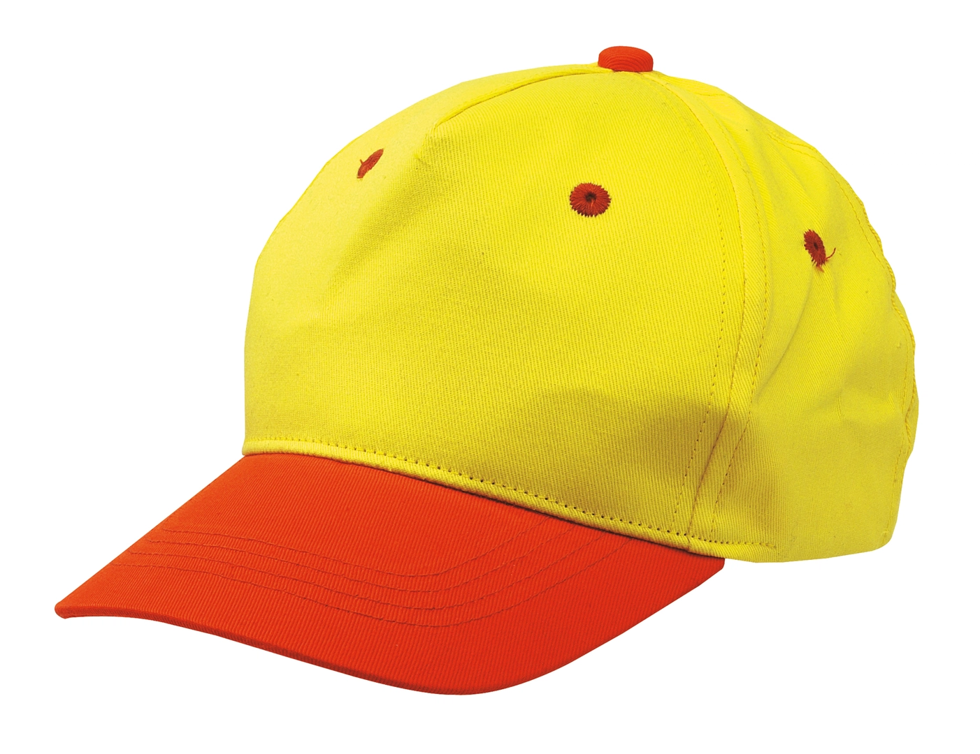 Casquette de Baseball CALIMERO à 5 segments pour enfant avec visière colorée, oeillets d'aération, segment frontal renforcé et fermeture velcro.