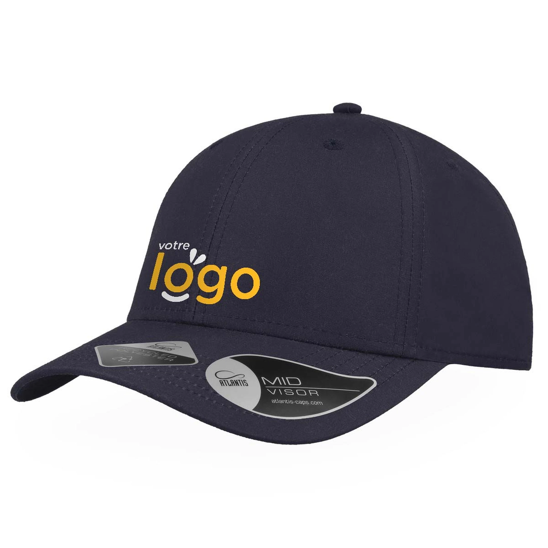 100% polyester recyclé. Casquette réalisée à partir de onze bouteilles en plastique recyclée par mètre carré. 6 panneaux, visière semi courbée, oeillets surpiqués, 6 coutures sur la visière, fermeture en PVC.
