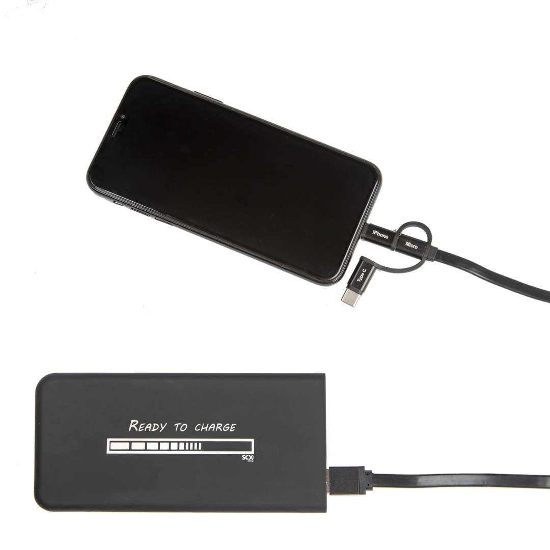 Fine et légère, le format de cette powerbank lui permet d’être facilement transportable et de ne pas être encombrante lors de vos déplacements professionnels, par exemple. Compatible avec tous types de mobiles, cette batterie externe se présentera comme un support de communication intéressant, original et surtout utile à vos collaborateurs et clients !