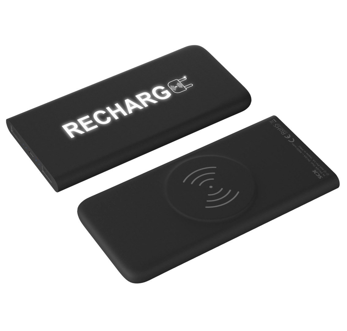 Chargeur à induction et powerbank slim avec logo lumineux