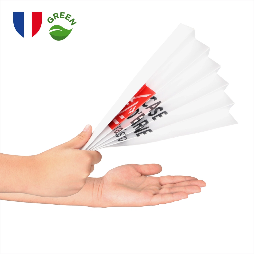 Pantacom est fier de présenter son clap de supporter en carton, un must-have pour tous les événements sportifs, entièrement fabriqué en France et conçu pour maximiser l'ambiance dans les stades. Fabriqué à partir de carton PEFC/FSC 350gsm, cet accessoire éco-responsable allie soutien passionné et respect de l'environnement grâce à l'utilisation d'encres végétales pour une impression quadri recto-verso de haute qualité.