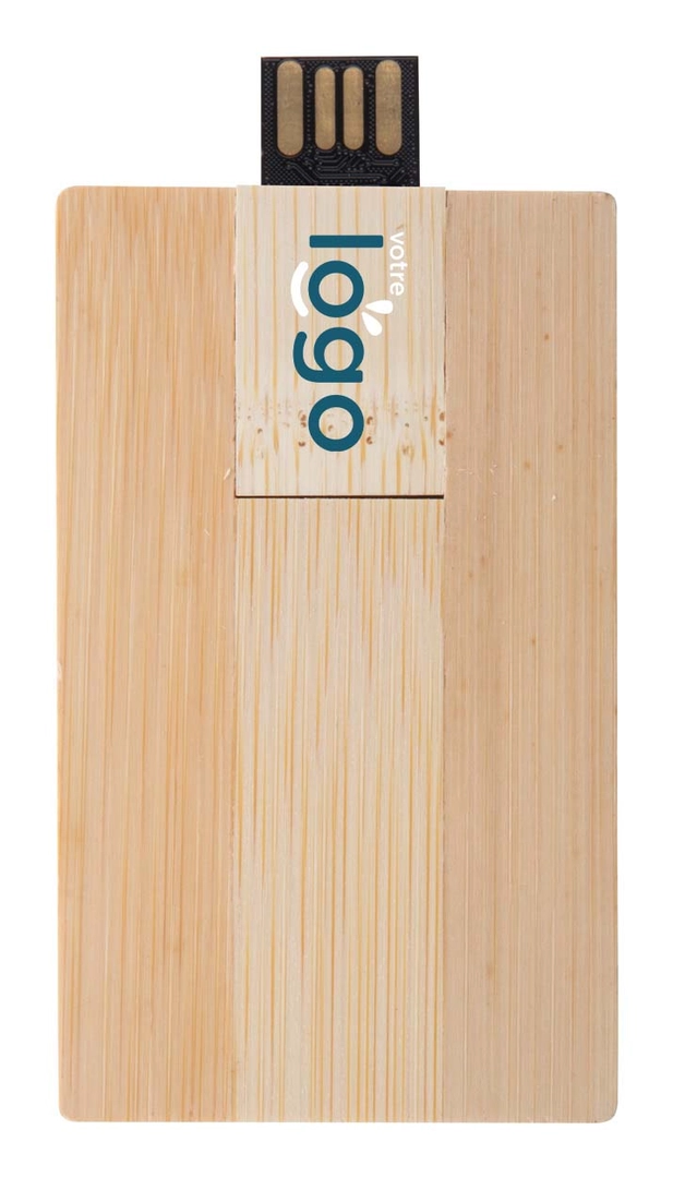 Clé USB en bambou en forme de carte de crédit. Capacité : 8/16GB.