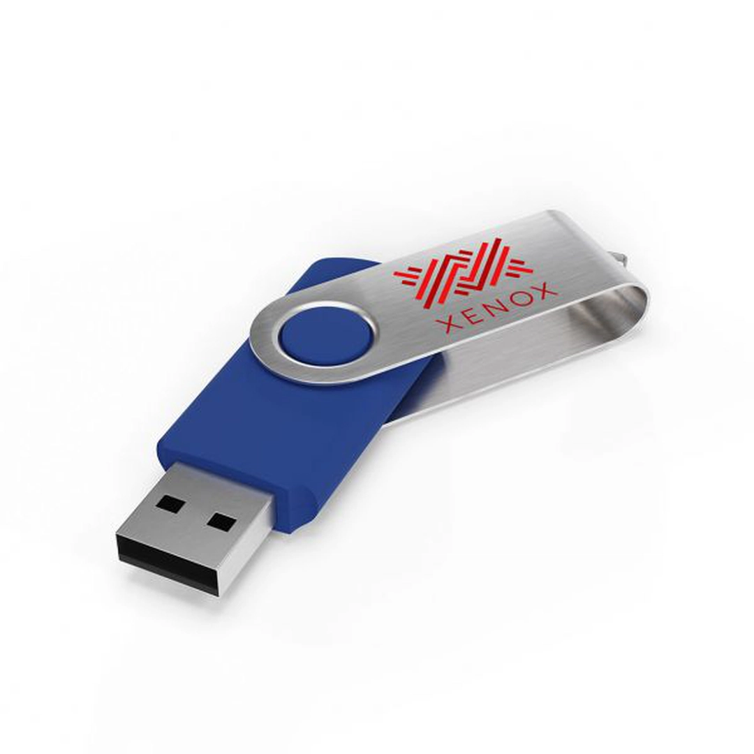 La Clé USB stick TWISTER : un classique que nous proposons avec une gravure laser sur la bague métallique pivotante à 360 degrés !
