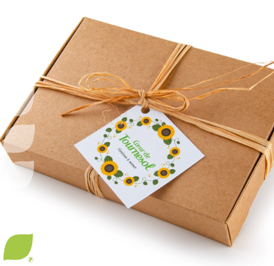 - Un coffret en kraft avec personnalisation par adhésif à votre communication