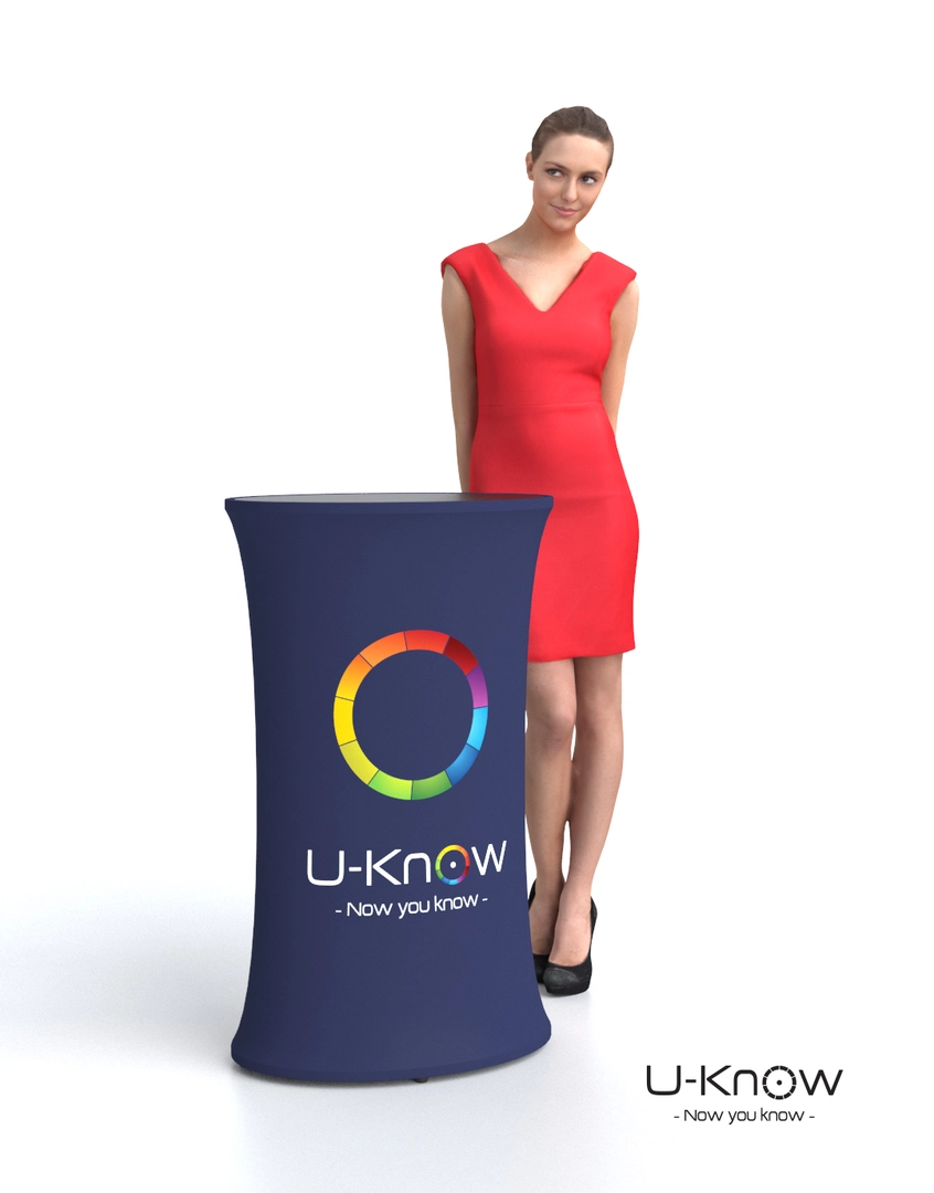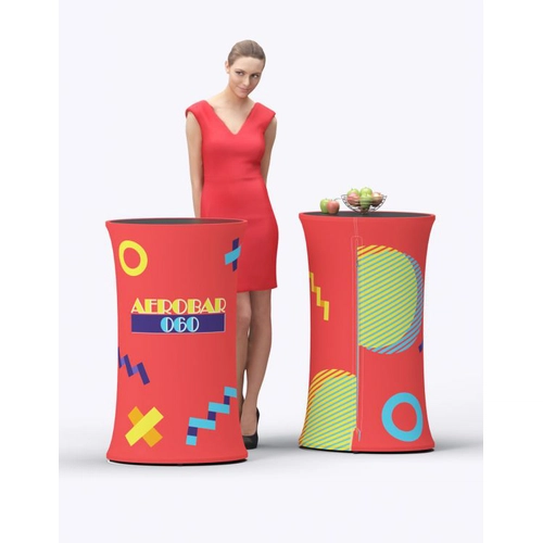 Ce comptoir d'accueil personnalisé et publicitaire en tubes aluminium est habillé d’une housse polyester imprimée en sublimation numérique haute définition. Monté, il a une forme ovale. Le produit est livré non assemblé. L’installation est simple grâce aux gaines silicones situées sur les contours inférieur et supérieur de la housse afin de la lier aux plateaux en bois noir. La structure est livrée dans son sac de transport matelassé en polyester Oxford (inclus).