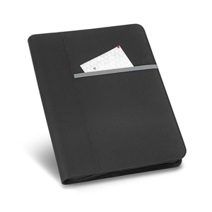Le conférencier publicitaire A4 est un porte-documents personnalisé généralement équipé de post-it, stylos, pochettes… Pour le modèle suivant, à l’extérieur, vous trouverez une pochette très pratique pour y glisser des documents sans avoir à ouvrir le conférencier personnalisé. A l’intérieur, 4 anneaux de 20 mm qui permettront aux utilisateurs d’avoir sur eux, un classeur de conférence. Vous y trouverez également un bloc de 20 feuilles lignées, un support pour stylo et des compartiments de rangement, pour différents documents, cartes... Ce conférencier personnalisé à l’avantage non négligeable, de réellement se fermer, grâce à une fermeture éclair.