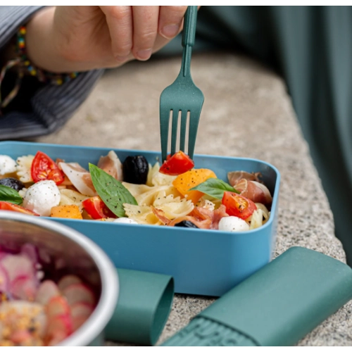 Conçu pour les amoureux de la nature et de la praticité, ce kit de couverts réutilisables est fabriqué à partir de matières biosourcées à 98%, comprenant de la fibre de bois et des huiles de restaurant recyclées. Cette composition unique non seulement réduit l'empreinte carbone mais assure également que le produit est solide, durable et passe au lave-vaisselle, sans compromettre sur le design séduisant et moderne.