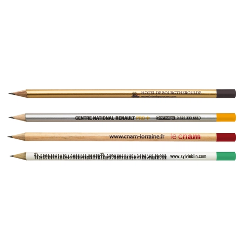 La forme de ce crayon est ronde. Nous vous proposons ce crayon publicitaire avec vernis couleur. Vous remarquerez également que le crayon a une tête trempée mais existe également avec tête pastillé, tête coupée ou même avec gomme. Pour ce crayon avec gomme, vous avez le choix entre 15 couleurs de virole et 25 couleurs de gomme, vous permettant d'avoir un pantone approchant de votre logo d'entreprise. Pour le choix du vernis, vous avez le choix parmis + de 25 vernis colorés. Ce crayon existe en version fluo également !