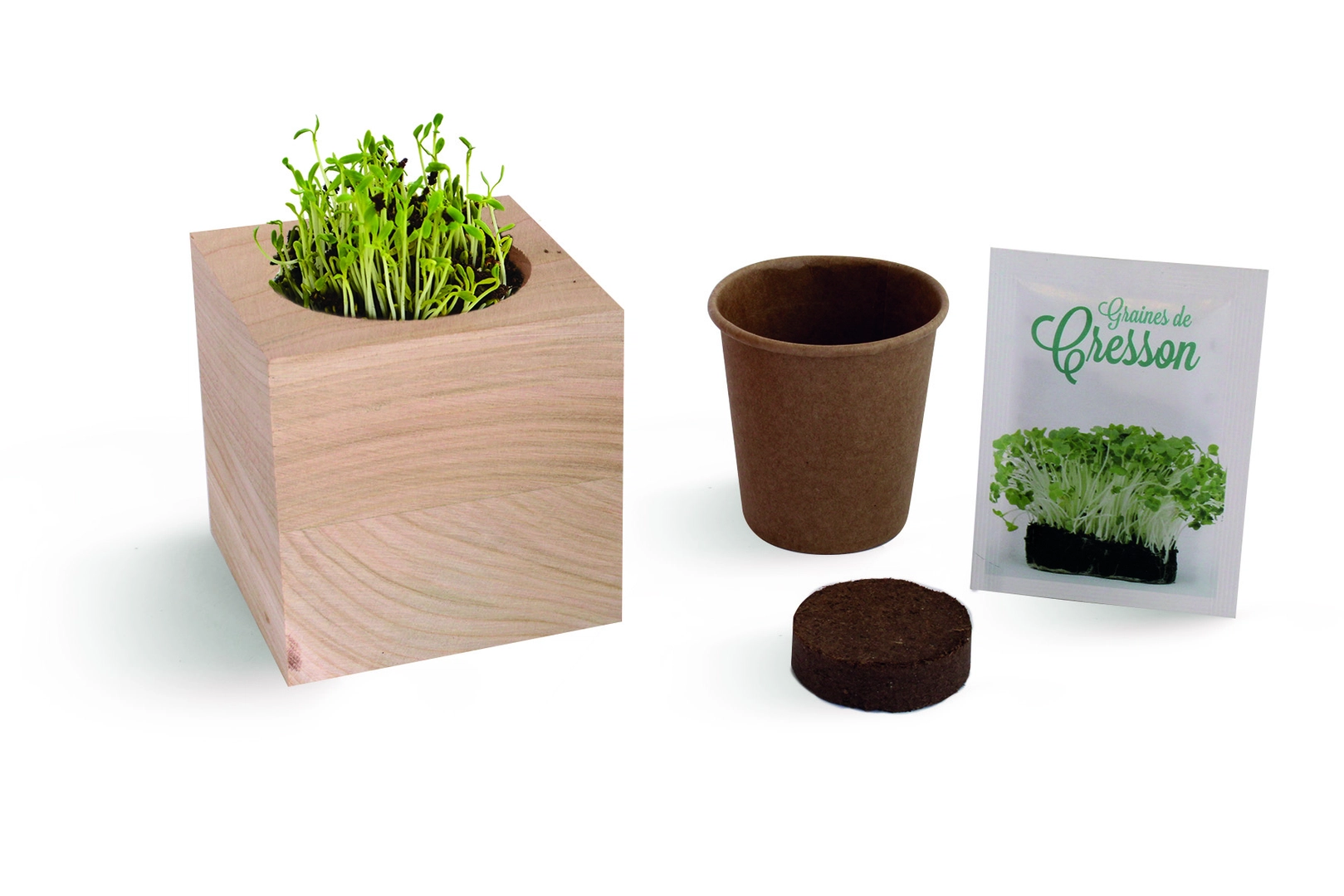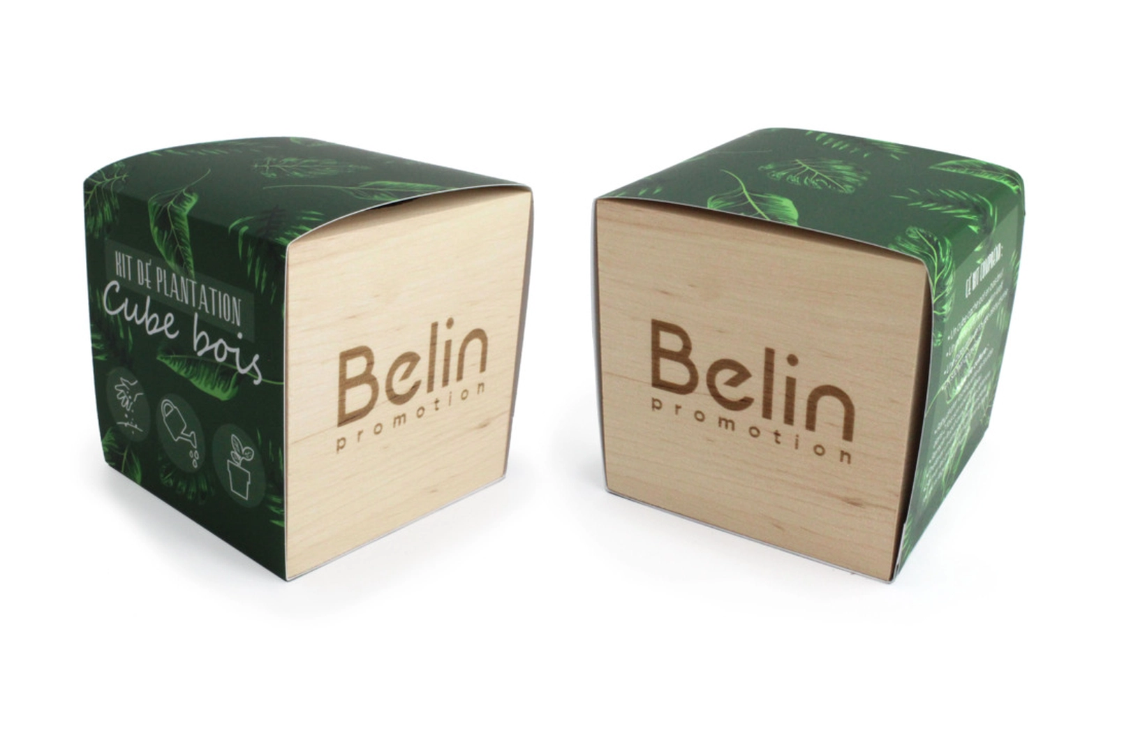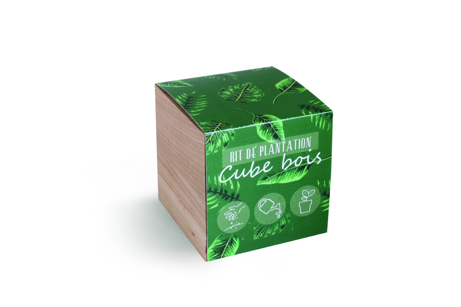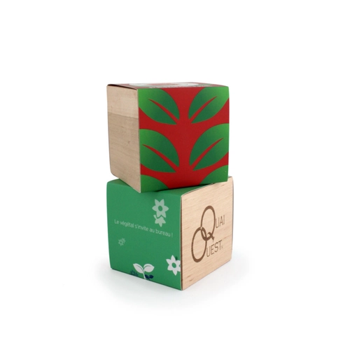Cube en Bois avec Kit de Plantation Personnalisable – Cultivez Votre Marque de Manière Éco-responsable | Pantacom