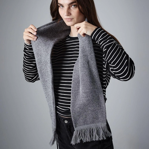 100% acrylique Soft-Touch. Écharpe luxueuse en tricot double épaisseur, avec franges. Dimensions: 152 x 18 cm. Heather Grey: 55% Polyester 45% Acrylique.