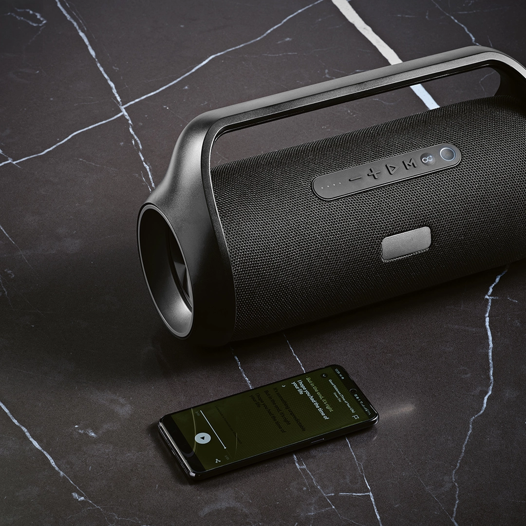 Fabriquée avec responsabilité en utilisant du plastique ABS recyclé (rABS), cette enceinte n'est pas seulement puissante, mais aussi respectueuse de l'environnement. Sa certification étanche IPX5 la rend parfaitement adaptée pour une utilisation en extérieur, que ce soit près de la piscine, à la plage, ou lors d'une randonnée sous la pluie.