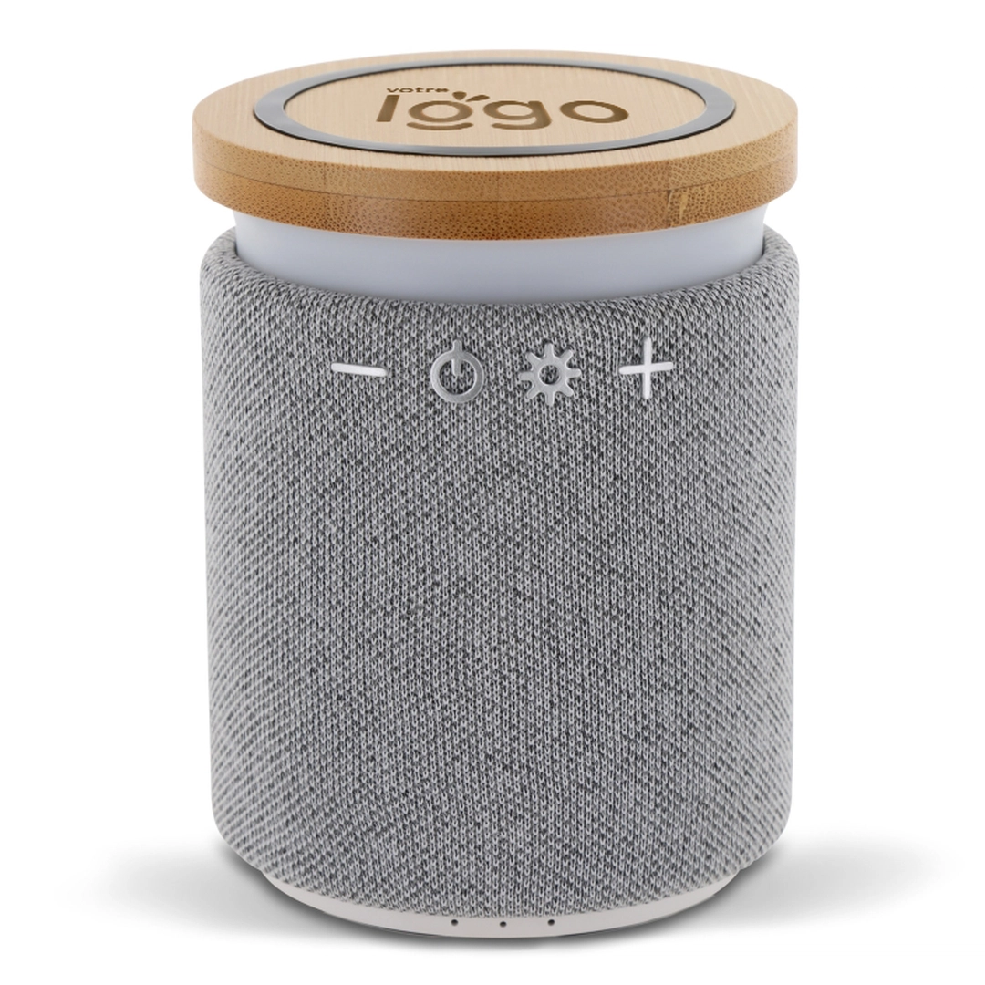 Enceinte bluetooth avec bambou et tissu - avec chargeur induction