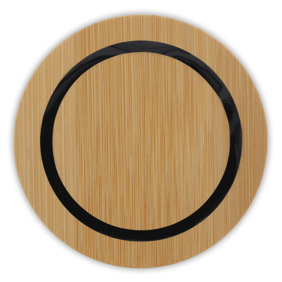 Haut-parleur sans fil fabriqué en bambou. Cette enceinte 2 en 1 vous permets aussi de recharger votre portable par induction. L'enceinte est livrée avec un câble pour la charger et est emballée dans une boîte cadeau.