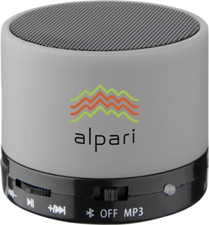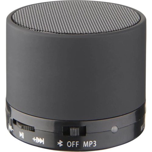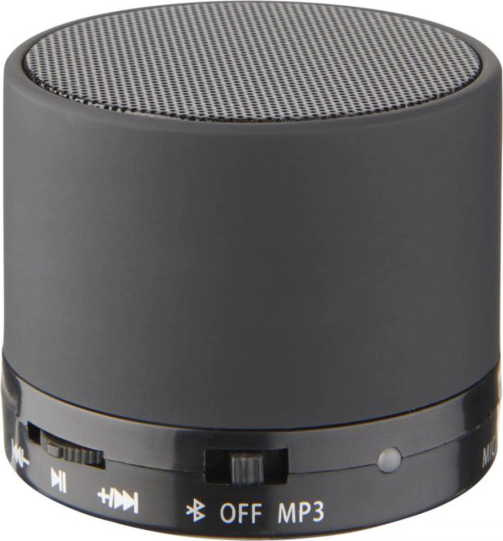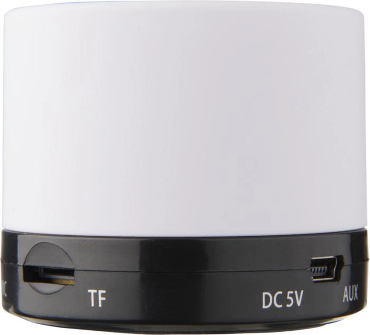 Haut-parleur de cylindre avec revêtement gomme. Profitez de la musique et des films n’importe où en l'appareillant à votre appareil compatible avec Bluetooth® tel qu'un iPhone, iPad ou des appareils Android OS avec ce haut-parleur portable Bluetooth® (portée de 10 m). Avec le micro intégré, le haut-parleur vous permet de faire une conférence téléphonique en déplacement par le biais de votre smartphone ou grâce à des programmes de chat vidéo comme Skype. Livré avec une belle finition caoutchoutée. Bloc d’alimentation USB fourni.