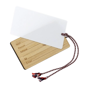 Etiquette à bagage en bambou fabriqué en France avec protection - avec ficelle tricolore